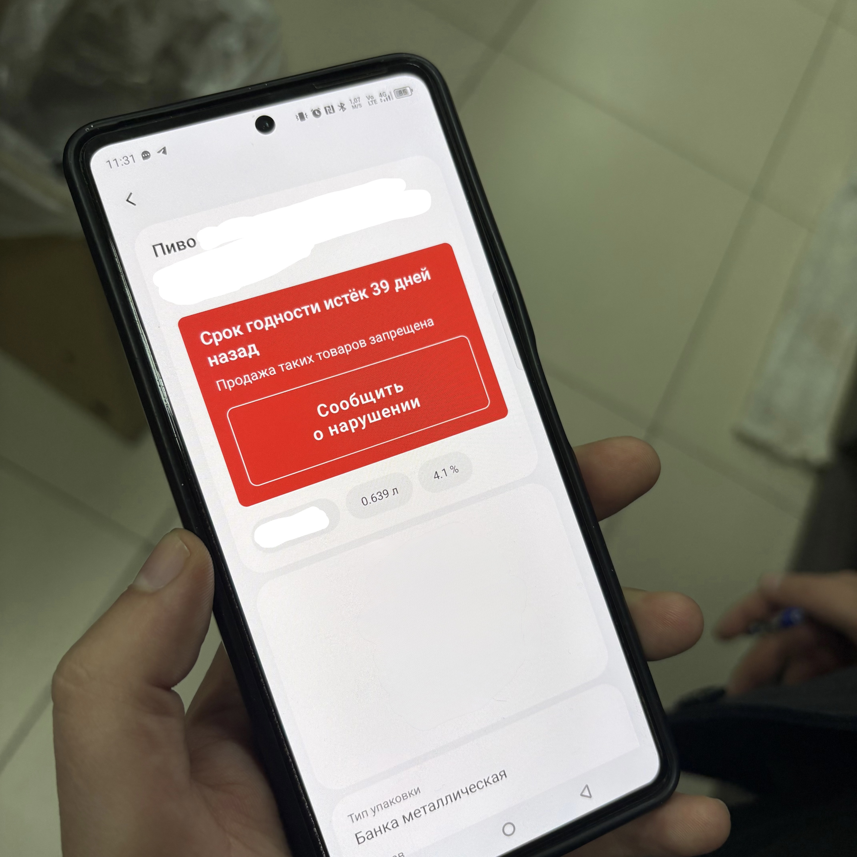 Сотрудники Роспотребнадзора также выявили просроченные продукты питания и алкоголь. Среди них: бутылочное пиво с истёкшим сроком годности на 39 день и конфеты с истекшим сроком на 13 дней. На замечание инспекторов продавец заявил, что «13 дней просрочки не считаются». Нарушения подтвердились с помощью приложения «Честный Знак».